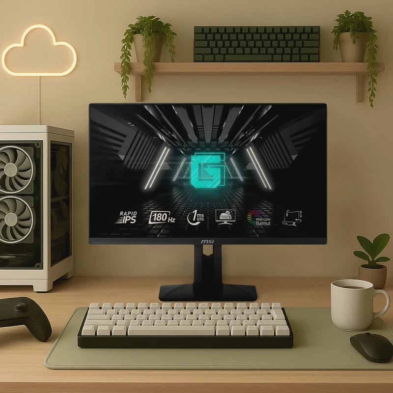 مانیتور گیمینگ MSI G244PF E2 یک نمایشگر ۲۳.۸ اینچی با طراحی جمعوجور و حاشیههای باریک است که تجربهای روان و جذاب برای بازیهای رقابتی ارائه میدهد. این مدل از پنل IPS با رزولوشن ۱۹۲۰×۱۰۸۰ (Full HD) بهره میبرد که دقت رنگ بالا و زاویه دید وسیع ۱۷۸ درجه را تضمین میکند. نرخ نوسازی ۱۶۵ هرتز و زمان پاسخدهی ۱ میلیثانیه MPRT باعث میشود حرکات سریع در بازیها بدون تاری یا لگ نمایش داده شوند. فناوری Adaptive Sync و FreeSync Premium نیز هماهنگی تصویر و کارت گرافیک را تضمین میکند و تجربهای روان فراهم میآورد.